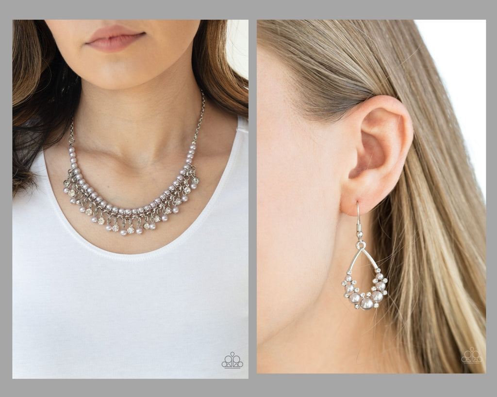 Paparazzi Silver $10 Set - A Touch of CLASSY Necklace and Fancy First Earrings