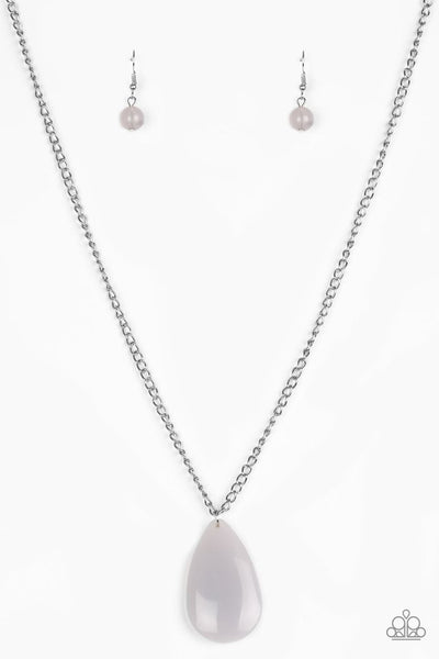 A neutral gray teardrop pendant swings from the bottom of a lengthened silver chain, adding a perfect pop of color to any outfit. Features an adjustable clasp closure.