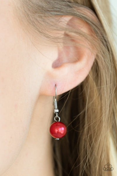 A collection of pearly red, classic gunmetal, and crystal-like hematite beads are threaded along an invisible wire below the collar for a glamorous look. Features an adjustable clasp closure.